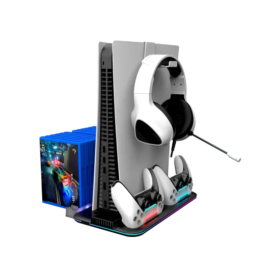 The PlayStation 5 is a powerhouse console capable of running amazing games and delivering amazing experiences. With all that power comes heat, and you probably noticed how hot your console gets during those intense gaming sessions. This can negatively impact the performance and longevity of your console. Well, we've got just the thing to keep your console cool as a cucumber: the Canyon PS5 Cooling Stand is the ultimate solution to keep your device operating at peak efficiency. Equipped with a high-speed fan featuring three adjustable speeds, this cooling stand effectively dissipates heat, preventing overheating and extending the lifespan of your console. What’s more, it is fully compatible with PlayStation 5 Slim — so no device gets left out when it comes to staying cool. We included the Type C cable of the right size to power this cooling system from the console’s USB C port. The stand supports simultaneous charging for two original PS5 controllers, and an LED light indicator will show the charging status. Keep your controllers fully charged and ready for action, eliminating downtime and interruptions. There’s another USB-A port to charge… well, whatever you want! Stay organized with the integrated disc storage, capable of holding up to six game cases. The dedicated accessory compartment provides a secure and dust-free storage solution for your gaming peripherals, while the headset holder keeps your headphones neatly organized. Phew, that's a lot of features! So if you want to keep your PS5 in great shape, this cooling stand is a must-have. Think of all the extra hours of gaming without any pesky overheating issues. It's a win-win. Grab your cooling stand today!