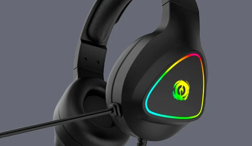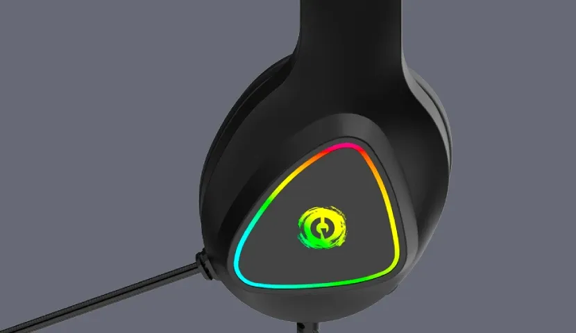 The headset offers a dual connectivity option. First, plug it into a 3.5mm jack or use a splitter in case you need to connect microphone and audio separately — we added it to the package. Second, make sure to connect the USB cable to your computer to enjoy the mesmerizing RGB light.