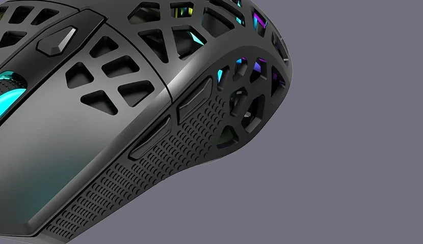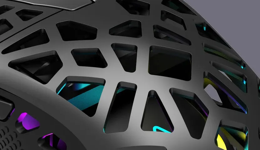 This eye-catching perforation is designed to reduce housing weight, thereby reducing the stress put on the arm muscles. Plus, the perforations provide ventilation to reduce skin sweating and make the mouse more comfortable during long gaming sessions. The weight-reduced perforated housing is designed to help you maintain high responsiveness over time.